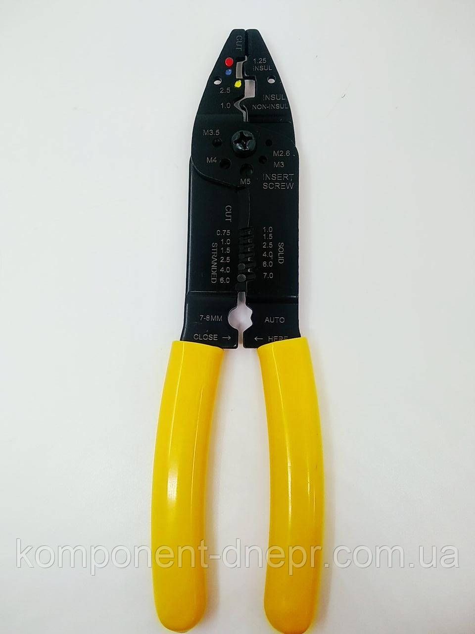 - на губцях передбачені отвори для зачищення дротів різних діаметрів від ізоляції;